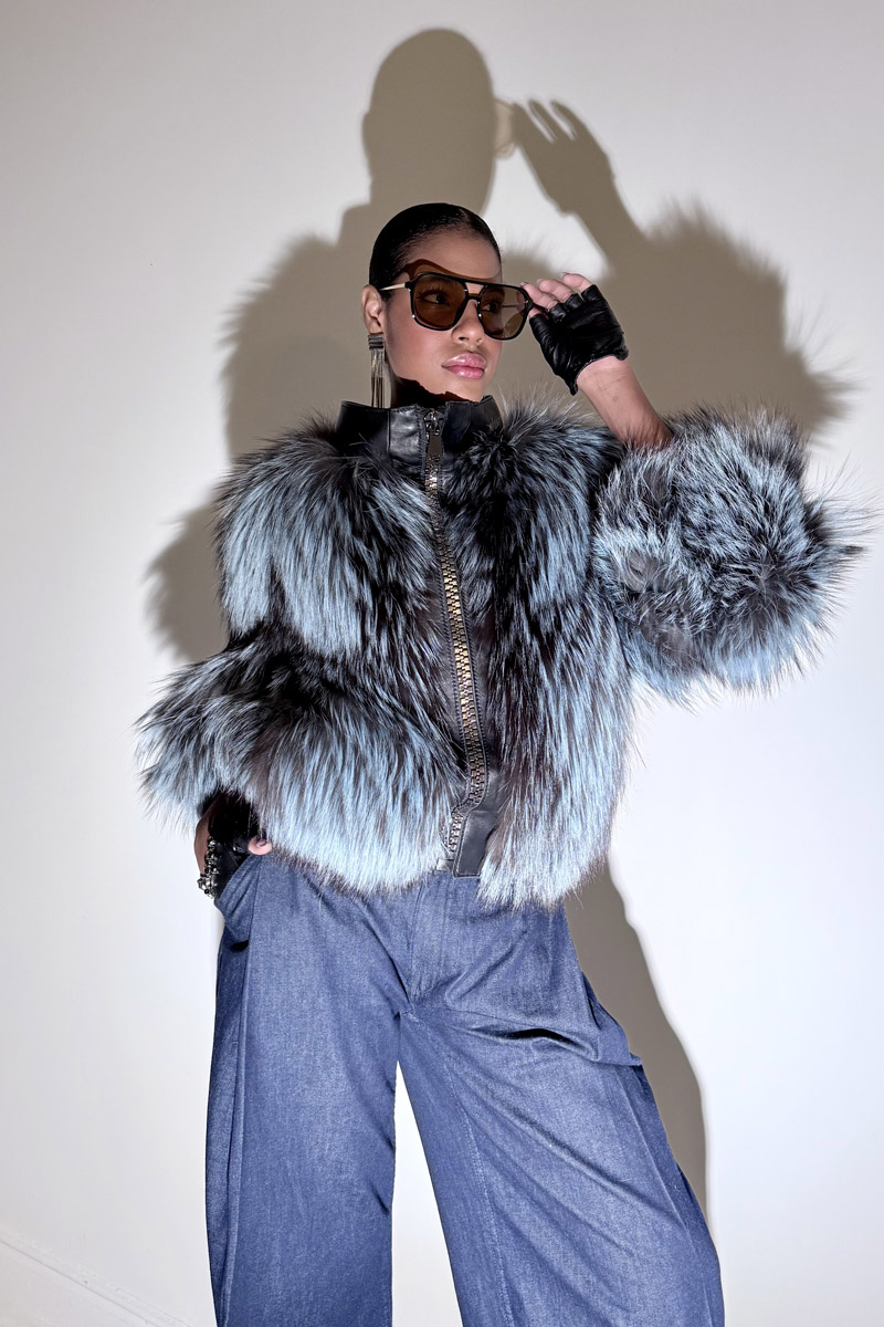 Chaqueta bomber de zorro argente azul