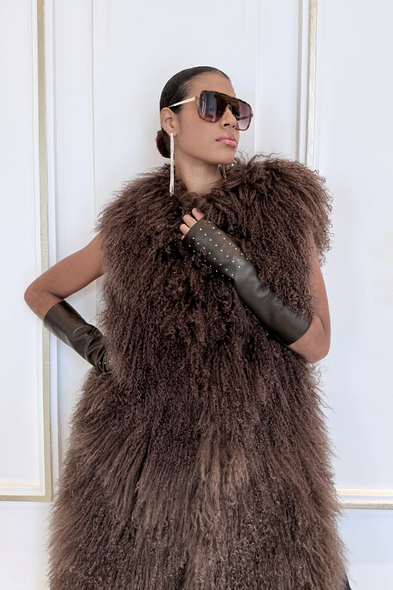 Chaleco largo de cordero mongolia marrón