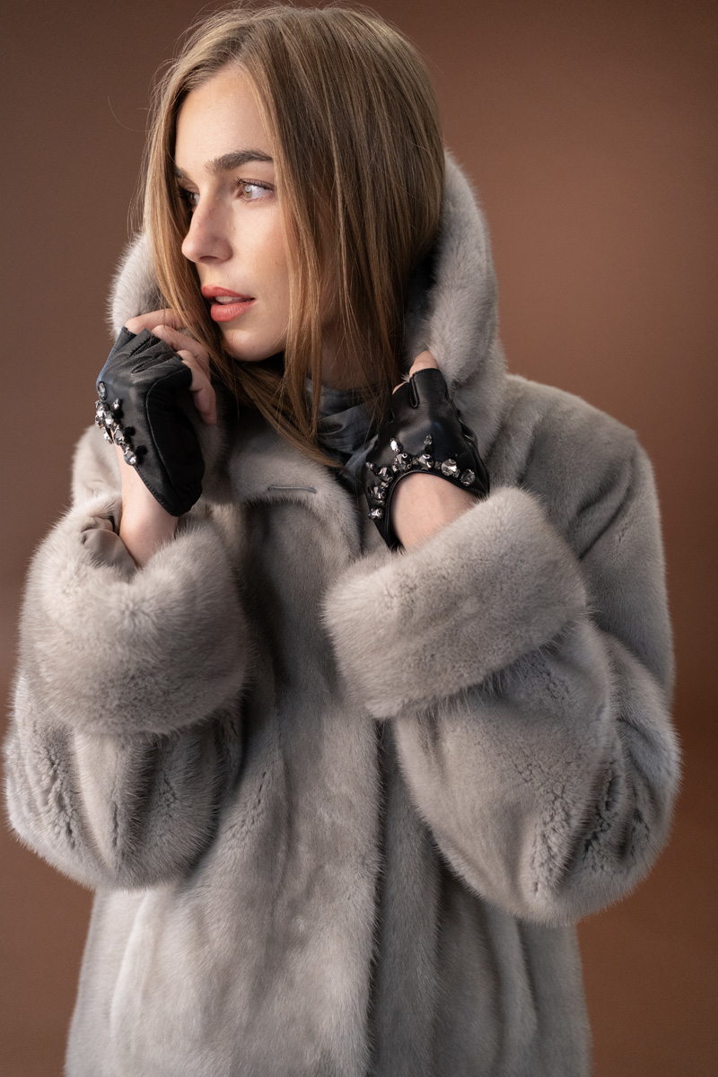 Chaqueta de visón con capucha color gris