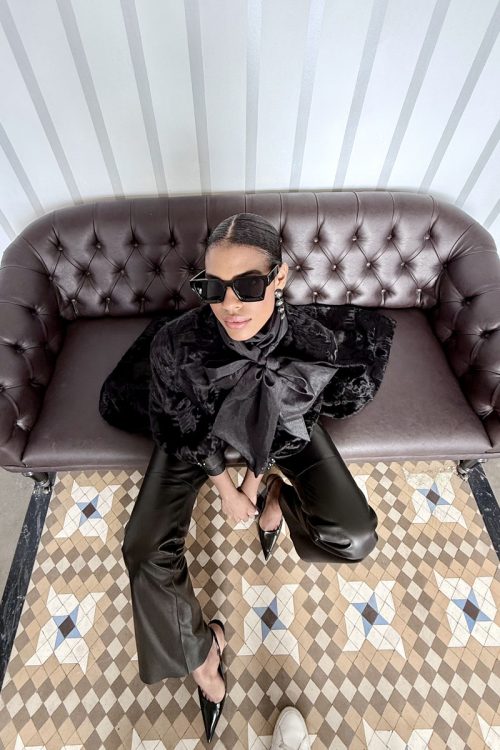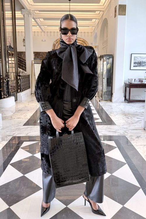 Completa tu look con un abrigo de indian lamb (cordero) en color negro.