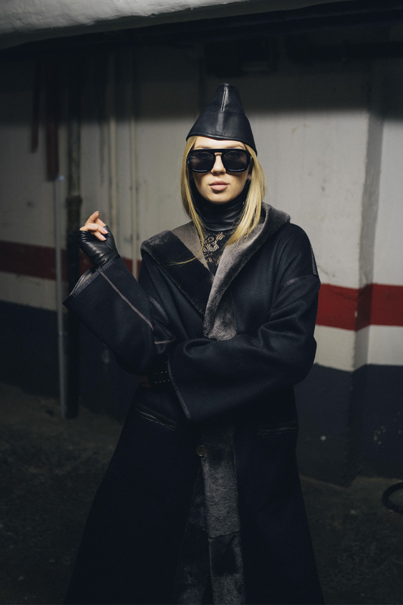 Abrigo de visón diagonal negro